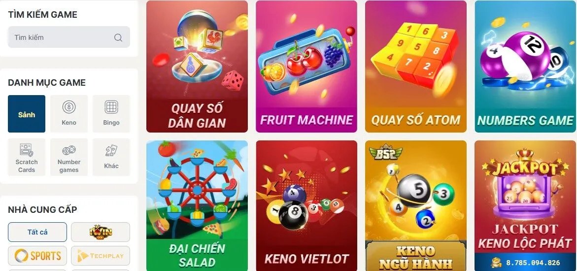 - 30% tổng cược: Keno, Number Games, Quay số (Saba, Techplay)