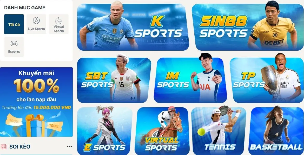 SIN88 mang đến thế giới thể thao sôi động với các kèo cược từ bóng đá, bóng rổ, tennis cho đến e-sports. Hệ thống cập nhật liên tục tỷ lệ và kết quả từ những giải đấu hàng đầu thế giới, giúp người chơi nắm bắt cơ hội cược nhanh – chuẩn – hấp dẫn nhất.